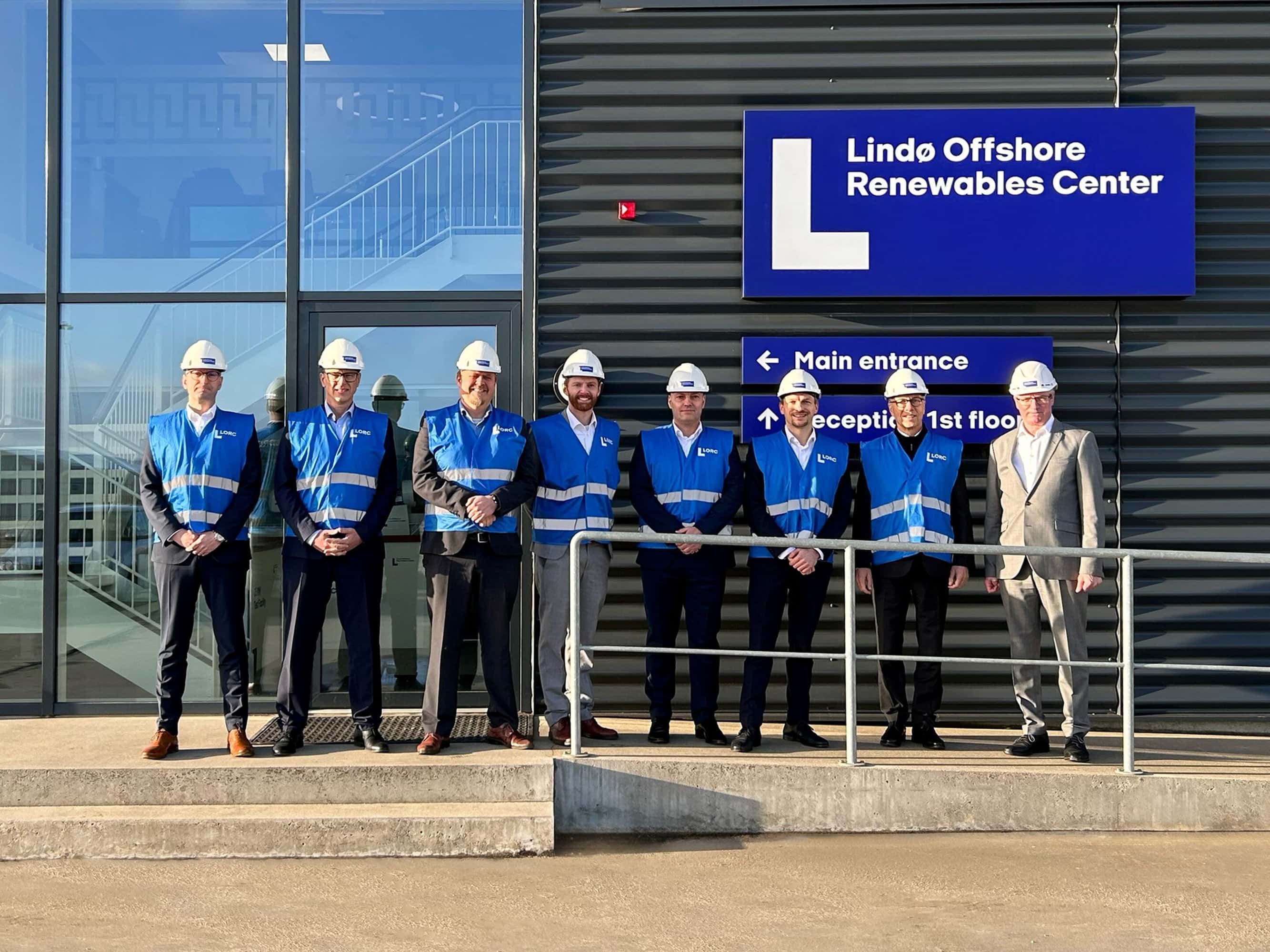 The world's most powerful test facility for wind turbine main bearings is being built in Lindø, Denmark. Schaeffler cooperates with LORC and R&D Test Systems: Jens Föcker, General Manager Schaeffler Denmark, Bernd Endres, VP Regional Business Unit Wind, Schaeffler, Peder Lund Rasmussen, General Manager, R&D Test Systems, Peter Winther, Key Account Manager, R&D Test Systems, Sascha Zaps, CEO Region Europe, Schaeffler, Dr. Michael Pausch, CTO Industrial, Schaeffler, Dr. Stefan Spindler, CEO Industrial, Schaeffler, Schaeffler, Torben Lorentzen, CEO LORC (from left).