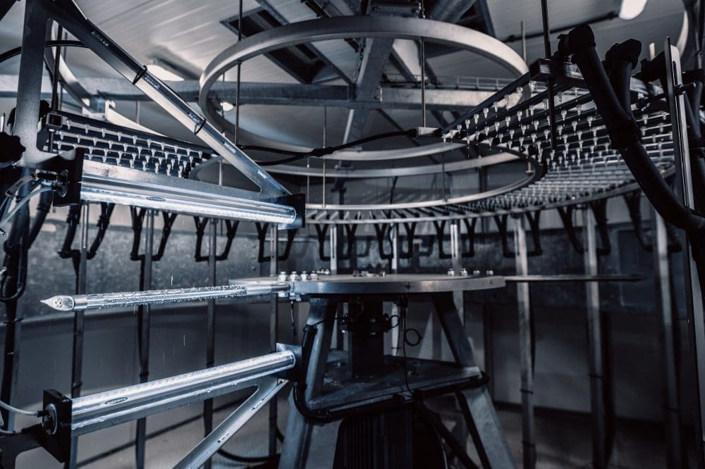 The test setup is based on a 3-bladed helicopter principle that ensures conditions similar to real flight conditions in harsh weather.
